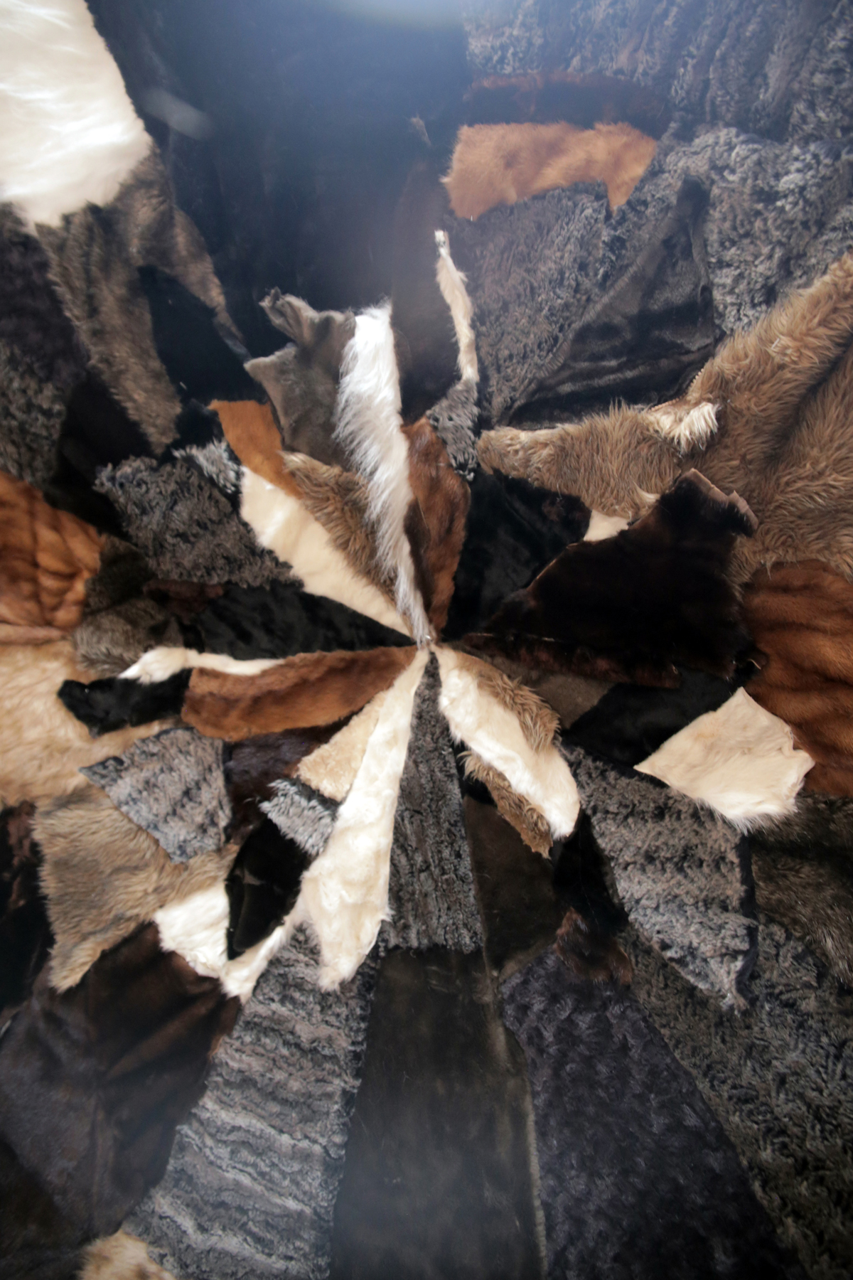 As part of the competition, the structure was fabricated by Atelier One Five (a fabrication studio in Toronto). The artists deconstructed secondhand fur & faux fur coats to make the lining of the sculpture, supplemented by manufactured furs. Speaking to collective intimacy in public space and ideologies of social warmth, the artists sourced secondhand material as an ethical and economic consideration, hoping to address the inherently controversial cultural role of fur in our cold climate.