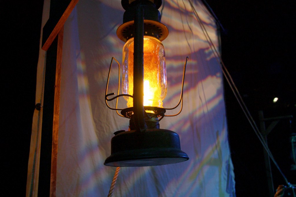 The play is staged in and around a ship-like structure made out of reclaimed materials. All of the songs and sounds of the tale are created out of the acoustic qualities of the set itself -a PVC pipe becomes the breath of whales, water in a barrel becomes the churning of the sea, a fire extinguisher becomes the deep resonance of the arctic ice.