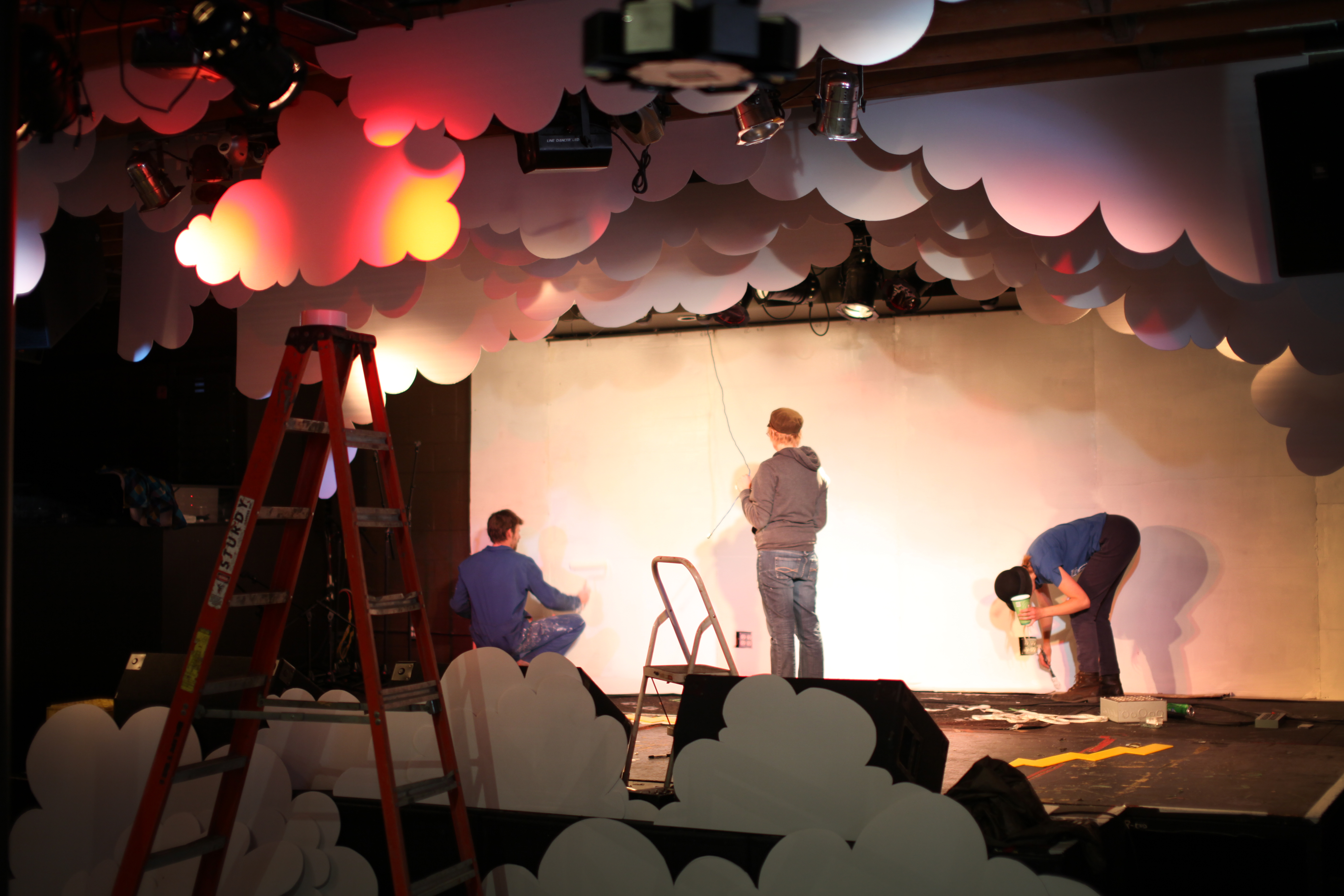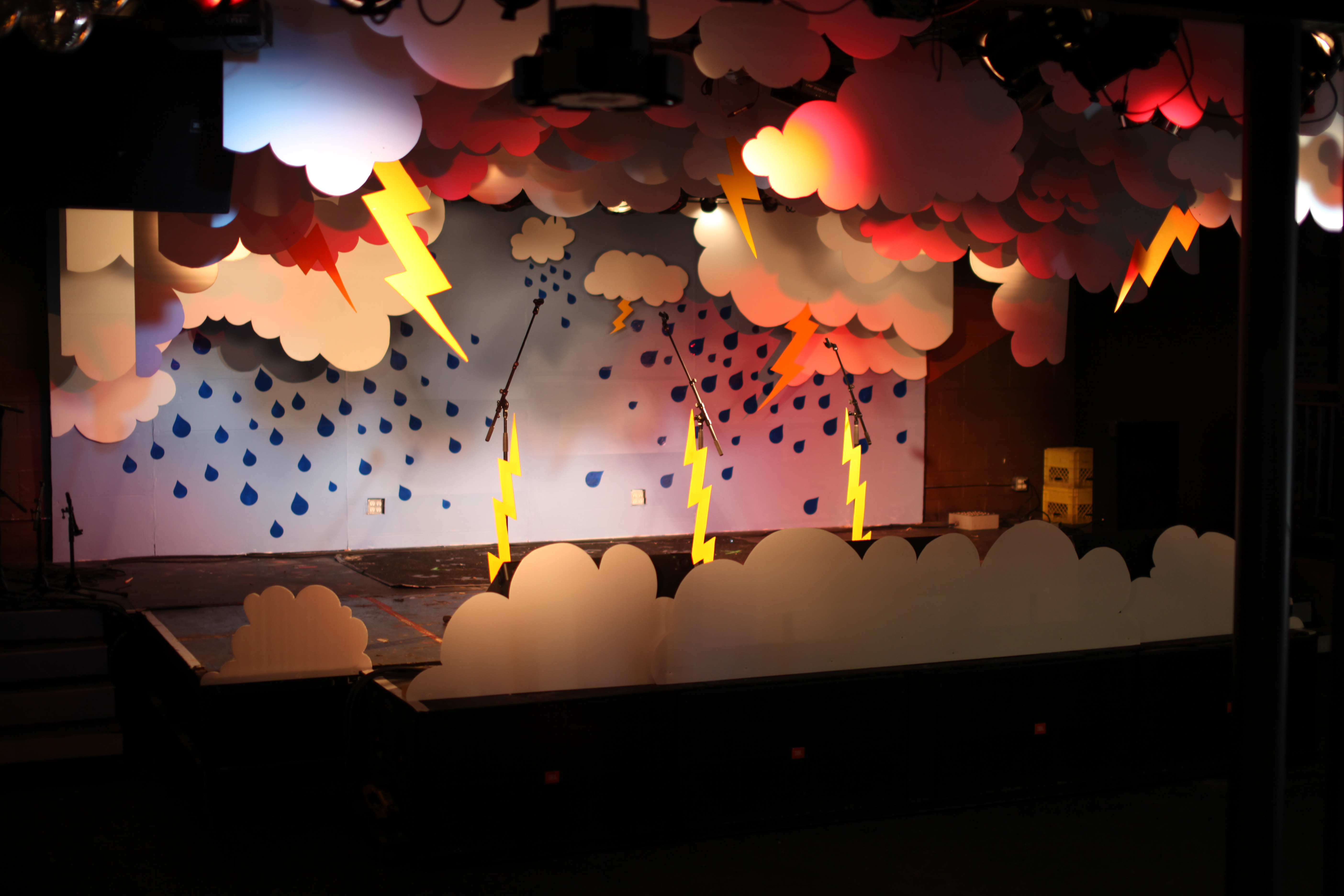 During Sled Island 2012, Caitlind r.c Brown, Wayne Garrett, and myself were asked to design a stage at the Republik Night Club in Calgary. Taking our mutual interest in clouds and thunderbolts, we created a Cloud Stage that was used by various bands during the festival.
