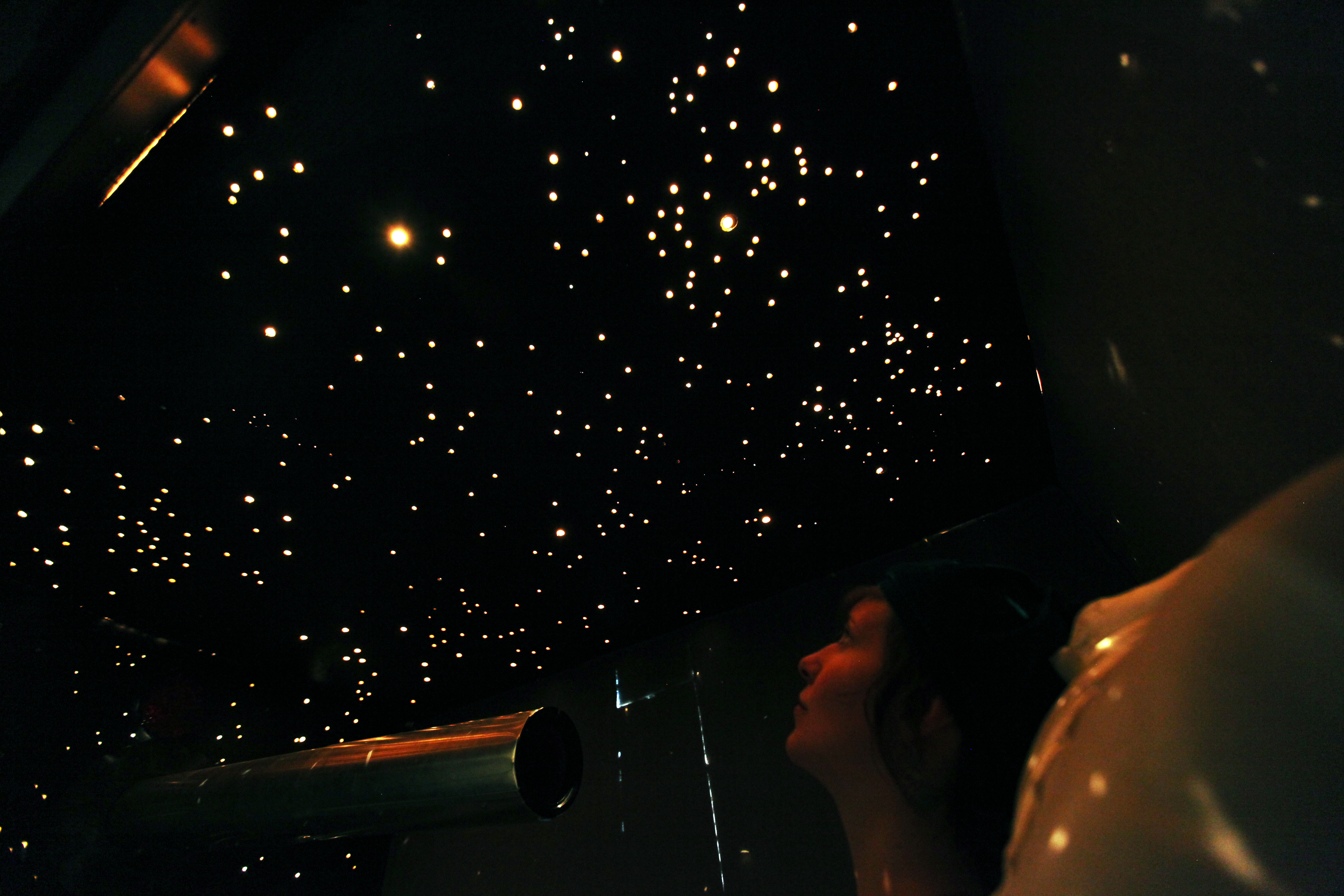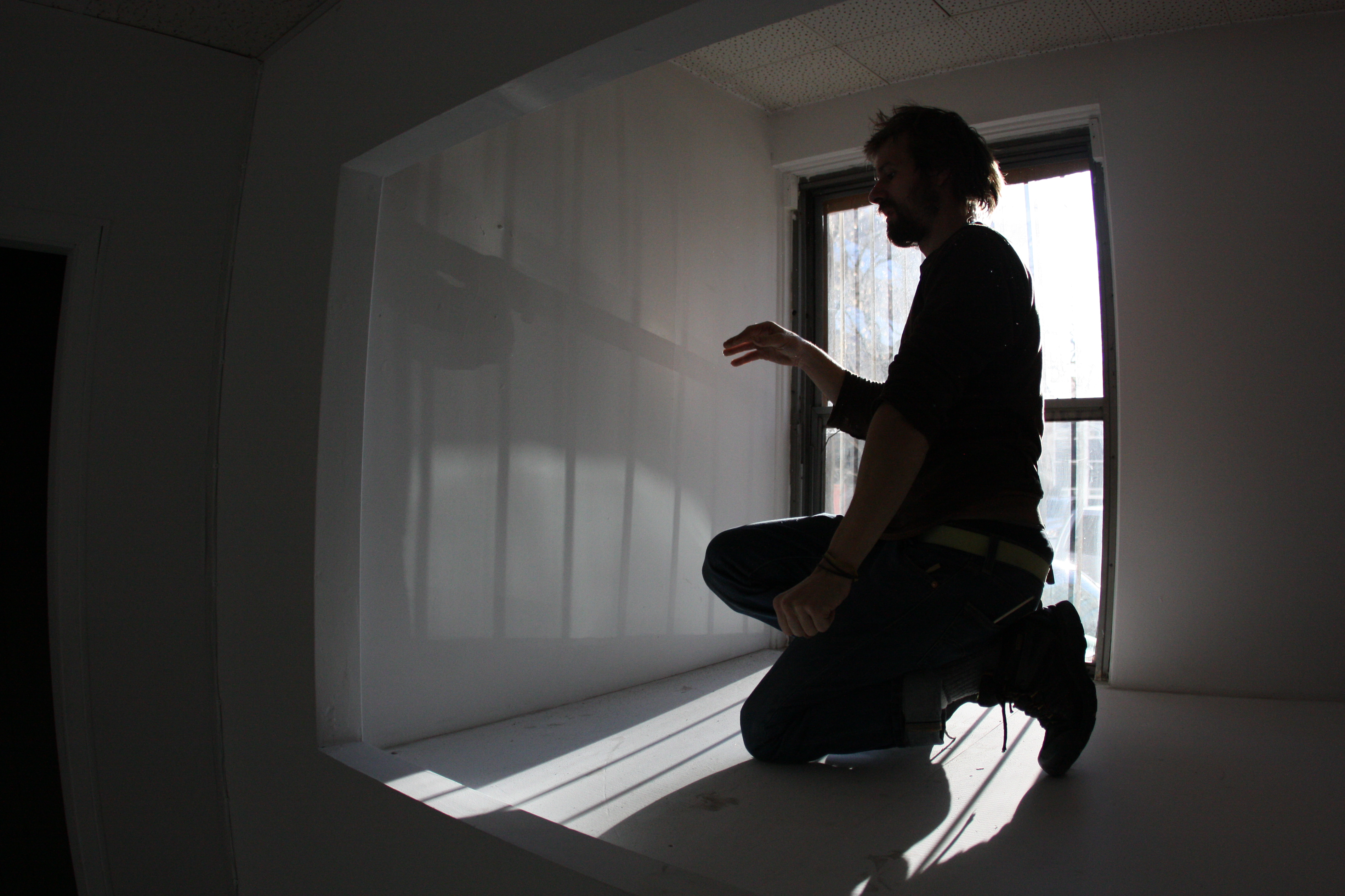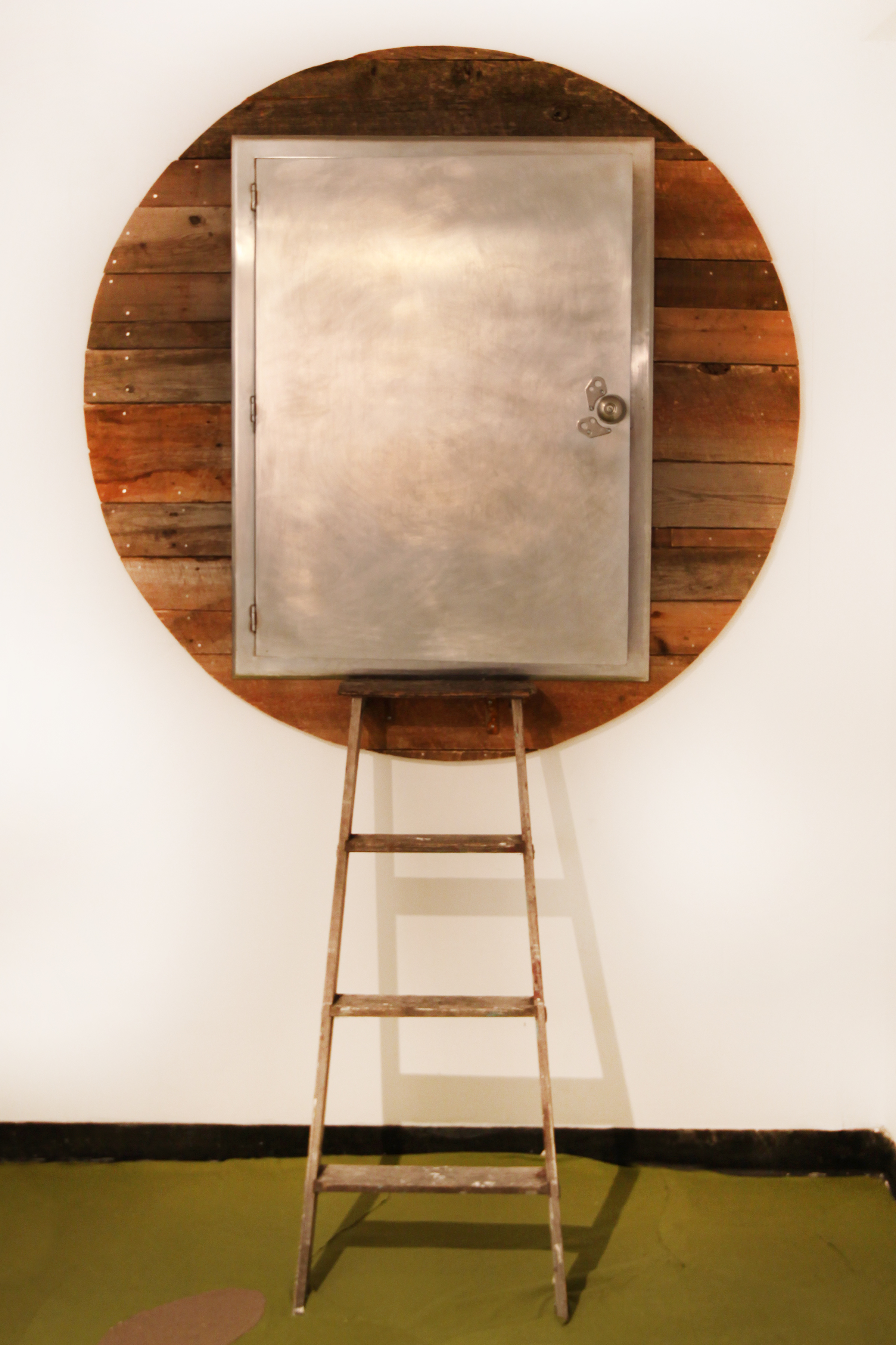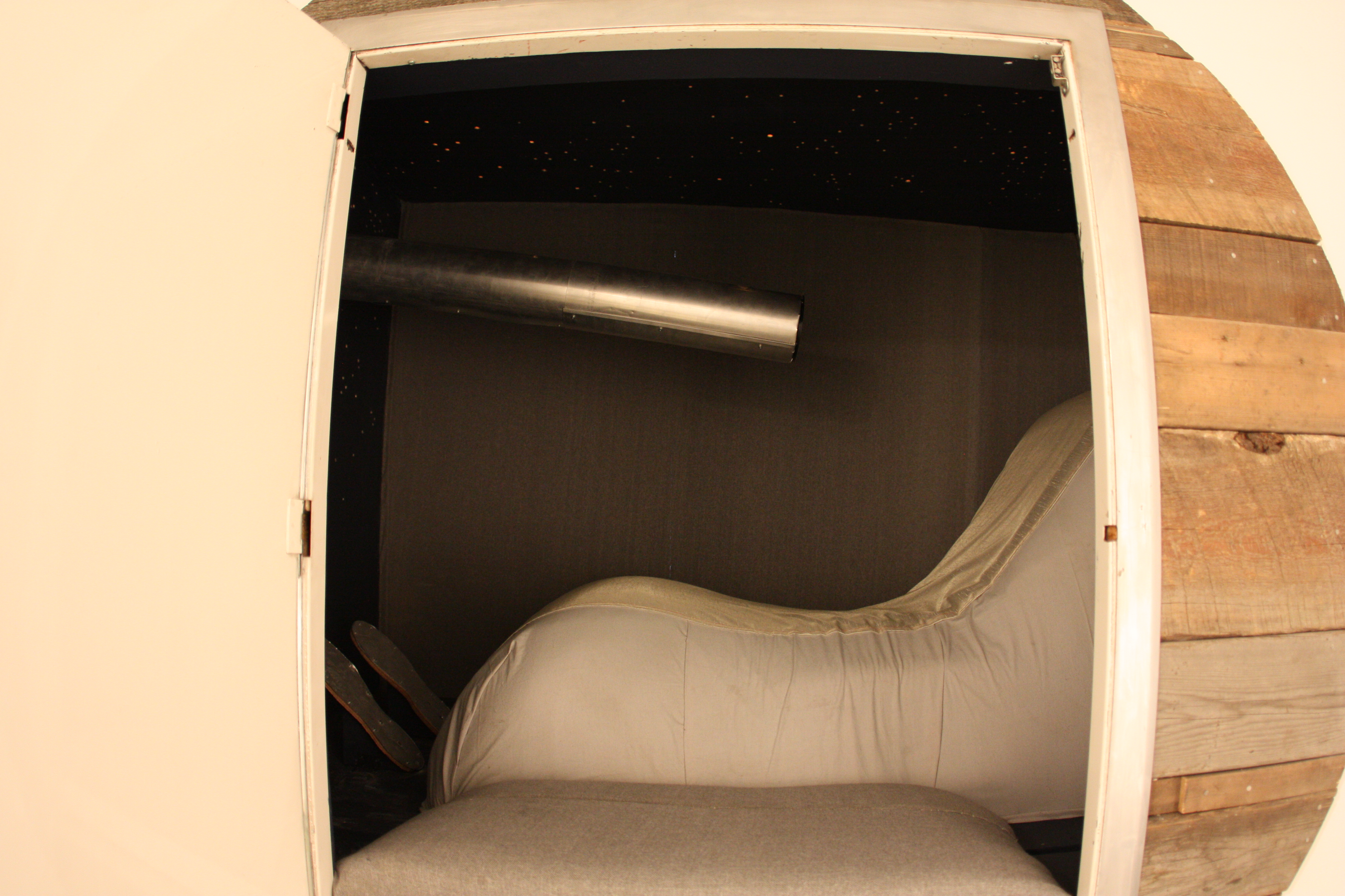 Space Bunker was a collaboration between Caitlind r.c. Brown and myself. As part of a group show, Caitlind and I chose a small, ignored nook in the back of the gallery and to create a viewing room. Giving viewers an experience of being under the stars and looking out through a telescope that was pointed at a swirling planet of unknown origin. The sitter could close the door behind them and escape, for a moment, to another space.