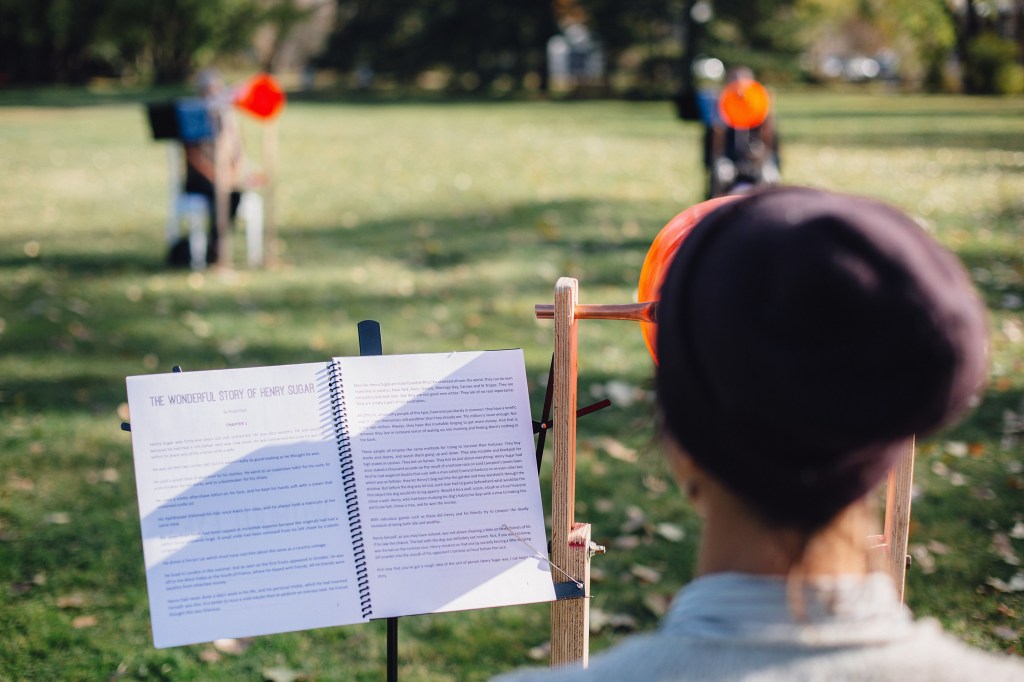 Within the rings of narrative offered by The Wonderful Story of Henry Sugar, we proposed WITHOUT EYES as the outermost, inter-performative ring, asking Listeners and Readers alike to re-see, re-think, and re-feel the world around them. Similarly, through working via an artform that is transient, temporary, and living in nature, we as artists were able to re-examine certain parts of our own practice, allowing renewed space for performative experimentation.