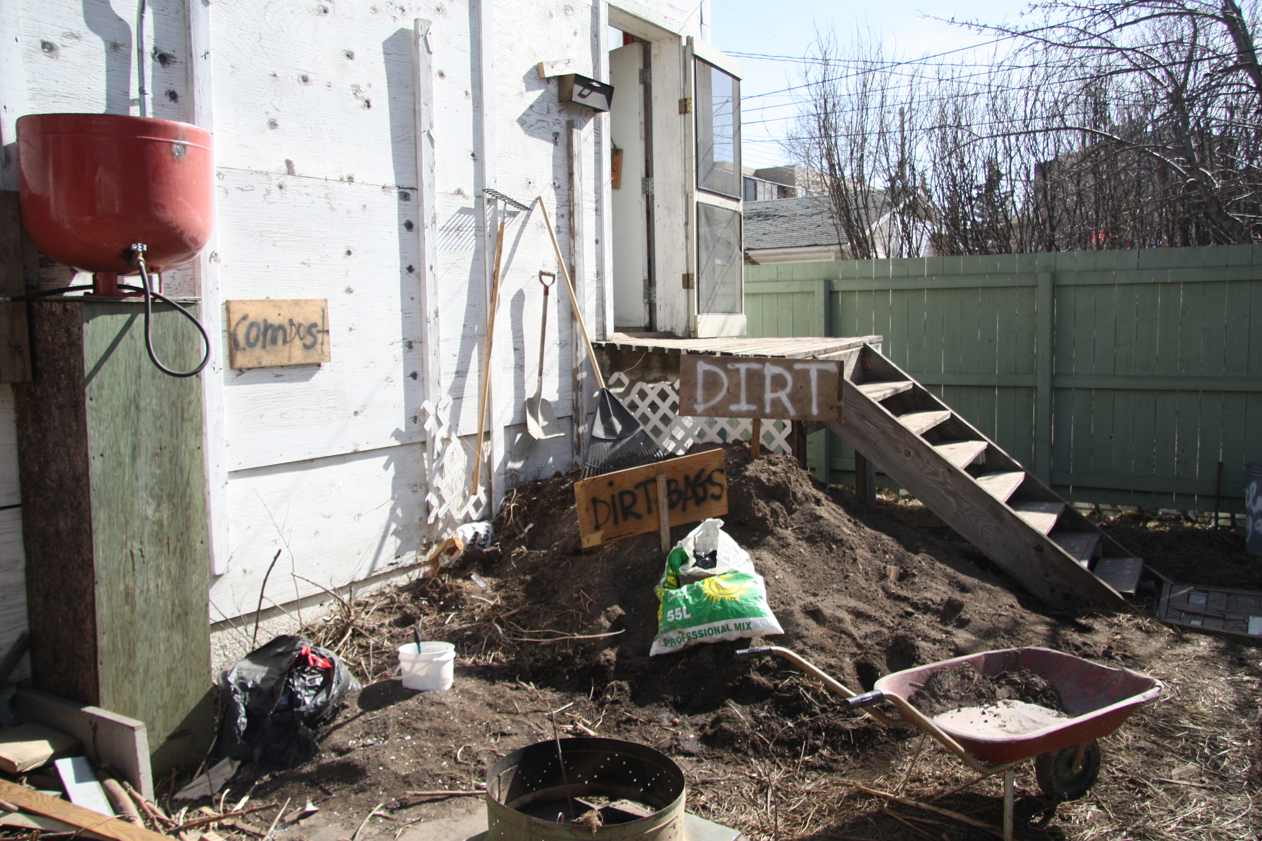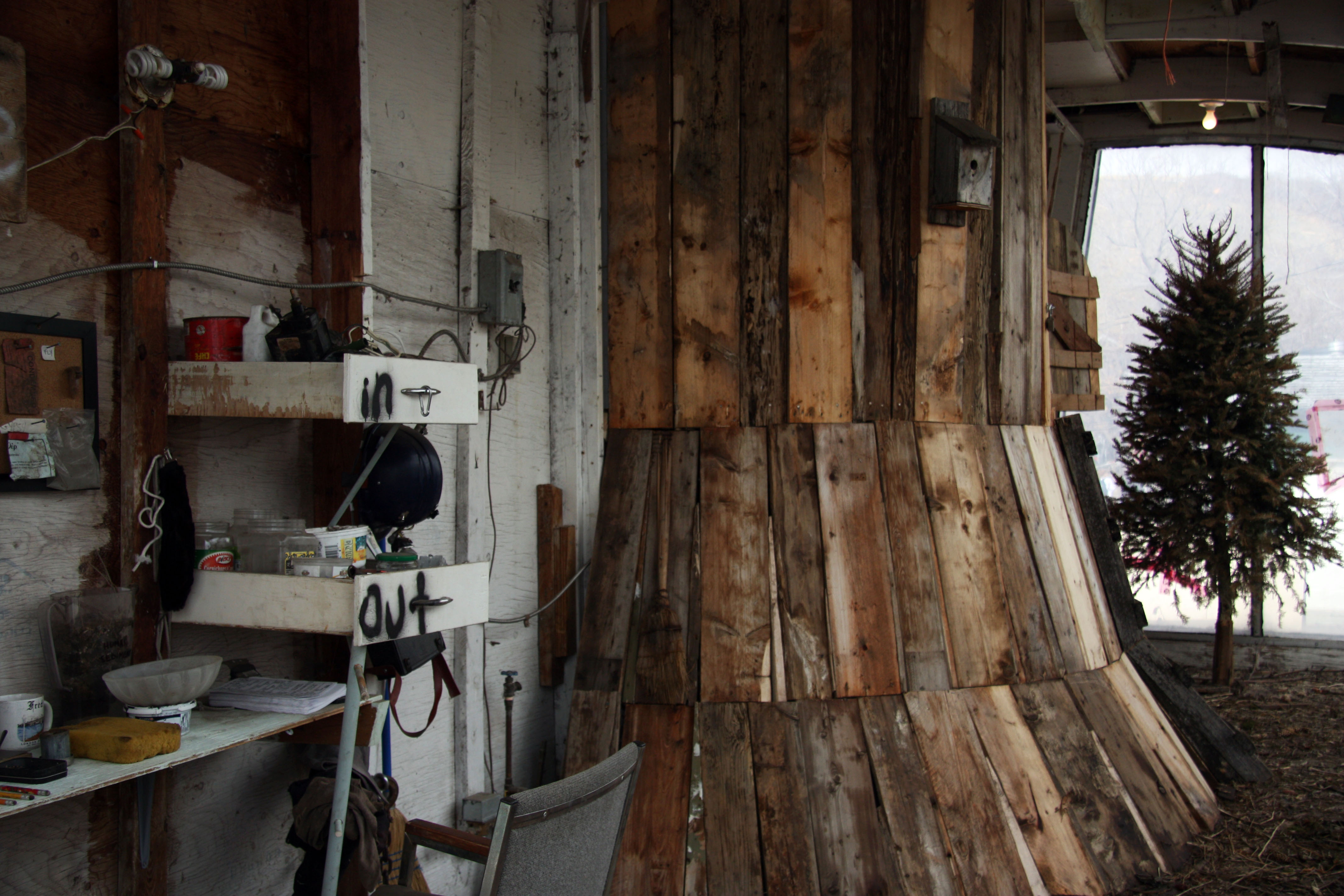 Materials: planter boards, dirt, discarded christmas trees, various materials found in the greenhouse.
